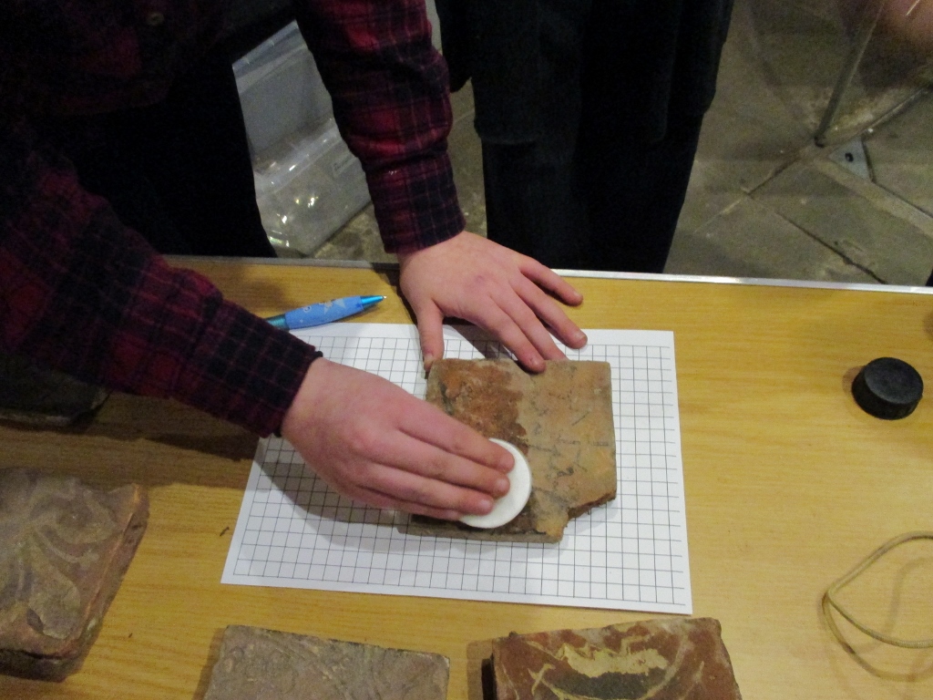 “I met up with Jo Wilson Museums, Heritage Officer at Lichfield City Council and Karen Slade, Medieval Tile Expert at the Guildhall Gaol Cells on the 3rd March 2015, to take another look at the tiles, and to try and get some better photos.