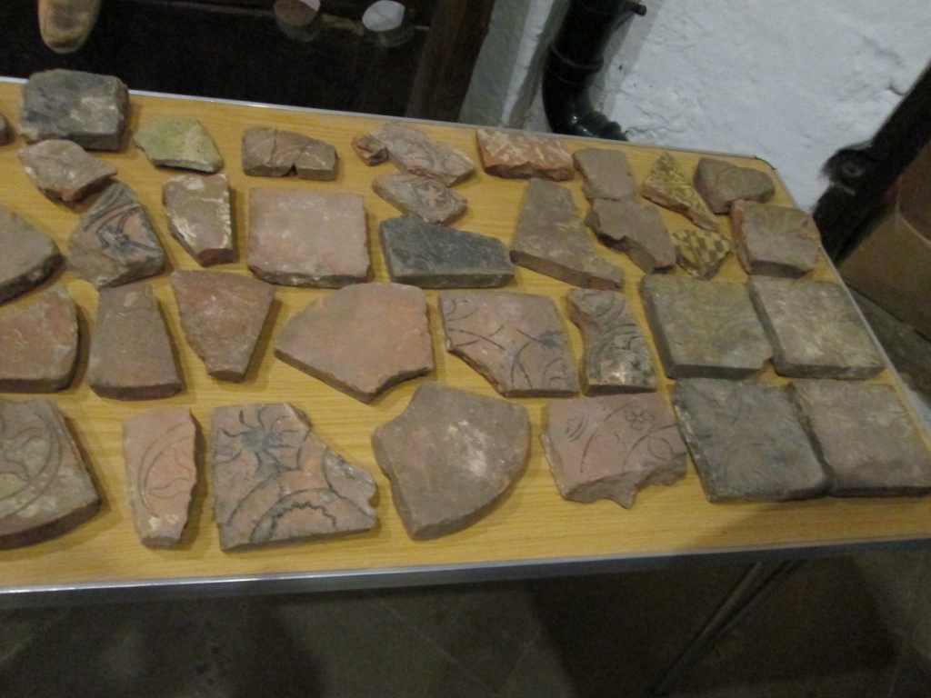 “Many broken floor tiles were found but in the passage (probably Cloister) leading from the Chancel to the Friary, the tiles were still in position about two feet square. People commenced to take them as souvenirs, and they had to be removed.”