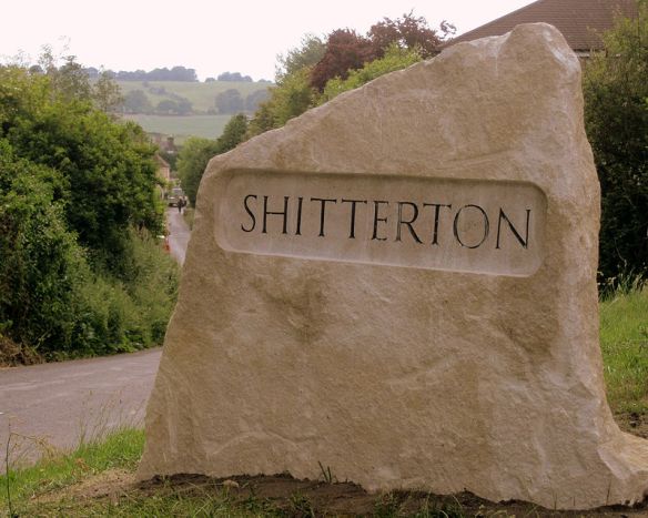 At the heart of what I want to do is to use place names as a way of trying to make sense of people’s sense of place and both real and fake etymologies, whether accidental or contrived to deliberately to change the story of a place, are a part of this human geography. I’ll be starting a new blog to cover all this after I get back from my holiday near Shitterton, which sits on a brook which flows into the River Piddle in Dorset and frequently appears on lists of Britain’s rudest place names. Go ahead and snigger as I did when I found out, but actually it brings more to the discussion than just a bit of light relief amidst all the death. In the nineteenth century, those delicate Victorians attempted to change the name to Sitterton, which is an example of etymology that says a lot more about people than it does about a place. Although some locals apparently still prefer the sanitised version of the village name, most are proud of their earthy origins, so much so that they decided to have it set in a ton and half of stone after the ‘official’ village sign was stolen for the umpteenth time. “We thought, ‘Let’s see them try and take that away in the back of a Ford Fiesta'”, explained the chair of the parish council. Might get it in the boot of a Leomansley Tractor though….