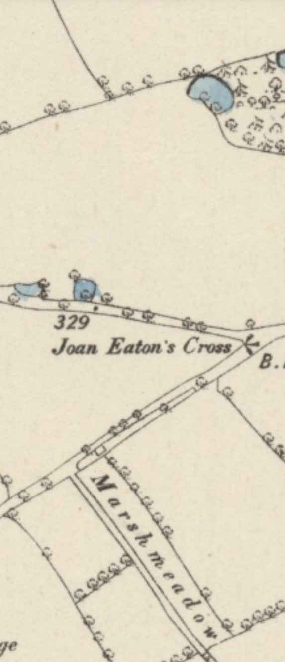 I would have been heading over Church Eaton way, where old maps show a ‘Joan Eaton’s Cross’, marked at a crossroads just outside of the village. A lovely email I had recently had asked if I knew who Joan was, as there were rumours she had been a witch. Snippets in local newspapers confirm this to be a long-standing local legend, although there was an interesting suggestion from an article in the Staffordshire Newsletter that she may have actually been the village’s patron saint. As one of those rare creatures, a woman whose name appears in the historical record of a place, she was always going to be sanctified or demonised wasn’t she? This small triangle of grass at the junction of the roads to Little and High Onn is said to be either her grave or the site of her execution, possibly both. The name ‘Joan Eaton’s Cross‘ suggests there may have once been a marker of sorts here but if there ever was it’s long since been replaced by a ‘Give Way’ sign.