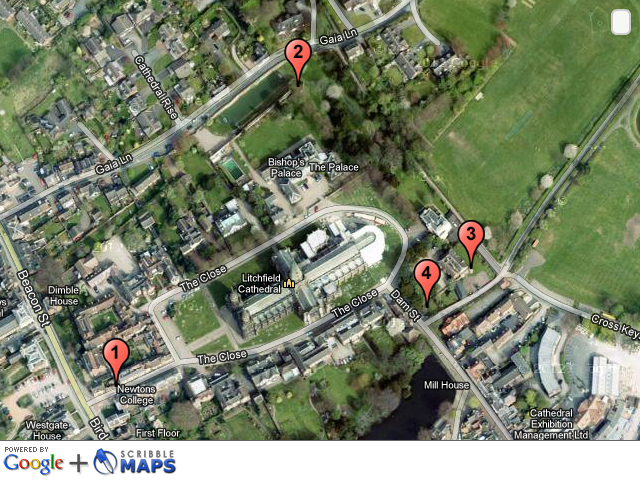 Last week I spent a sunny morning trying to trace the boundary of what would have been the medieval town. With the help of John Snape’s 1782 plan of Lichfield, it’s actually fairly easy to do, even for someone as illiterate at map reading as me. Bishop Roger de Clinton surrounded the south part of the new town he had laid out in the late twelfth century with a bank and ditch and fortified the shared northern boundary of the town and Cathedral Close. Apart from a couple of inconveniently placed walls, you can pretty much walk the whole way around.