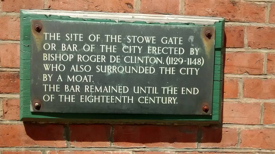 Snape’s plan also marks the gates, or bar(r)s, at the main entrances into and out of Lichfield, and there are plaques at each of the locations, with the, hopefully temporary, exception of the Sandford Street gate. The building it was mounted on has recently been demolished but I’m sure the plaque is being kept safely somewhere….