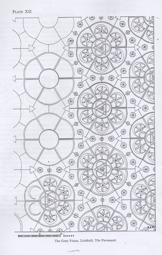 Kate asked me if I could do some research to see if the tiles were from the Friary, Me and my Mom went to the Lichfield Records Office, to go and look at ‘The Lichfield Friary’ by P. Laithwaite, which was reprinted from the Transactions of the Birmingham Archaeological Society where a report of Councillor T. Moseley’s findings from his exploration of the site in 1933 was given.