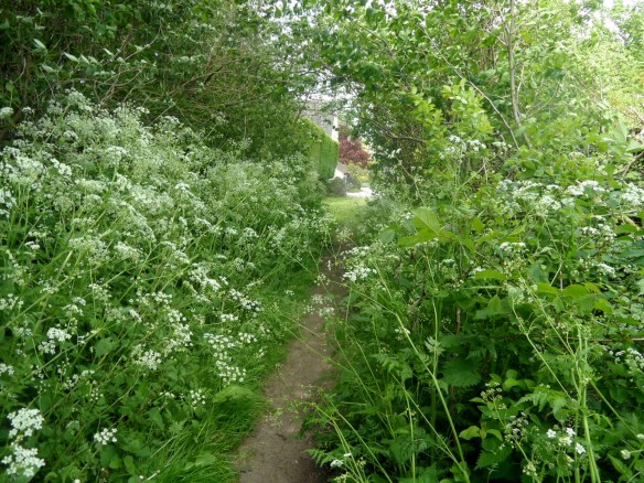 We continued along the wooded path leading to Fox Lane, Elmhurst. Interestingly, up until the middle of the last century, it seems that both the path and Fox Lane were actually a continuation of Dimbles Lane. After brushing past wild flowers and negotiating tree roots on the narrow, winding path we emerged from the green corridor into the village. I would love to know how often this path was trod by past generations, but surely none of them have ever tried to take a motor vehicle up there. Have they?