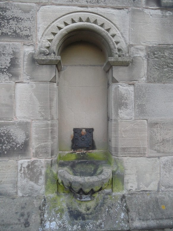 I find this next bit confusing and am happy to be corrected! What I understand is that the water came from a spring at Aldershaw. In 1301, Henry Bellfounder granted the Fransican monks the right to built a conduit head over the spring, and to pipe the water to the Friary. He apparently did this for motives of charity and for the sake of his and his ancestors’ souls’ health.  Although it seems the water was supposed to be for the friars’ use only, a public conduit was built outside the Friary gates.  When the Friary was dissolved in the mid-16th century, I understand that the Conduit Lands Trust took over the responsibility for maintaining the water supply to Lichfield when the spring at Aldershaw was granted to the ‘Burgesses, Citizens and Commonalty’ of the City of Lichfield. A fountain marks the approximate site of the original public conduit (and of course the later clock tower) near to  the library and record office. Although the water is no longer suitable for drinking, it serves as a symbolic reminder of the water supply that was once available here.