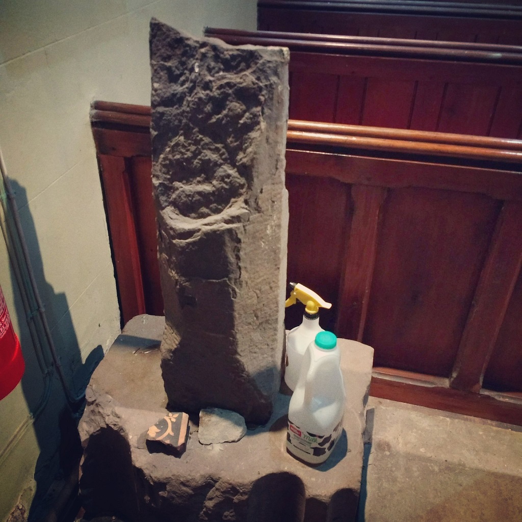 I suspect Pevsner would not approve but I think it gives churches a nice lived-in feel and exudes an eccentric sort of charm and therefore, I make no apologies for failing to remove the carton of milk and bottle of spray from my photograph of the remains of this stone cross in Tixall Church.