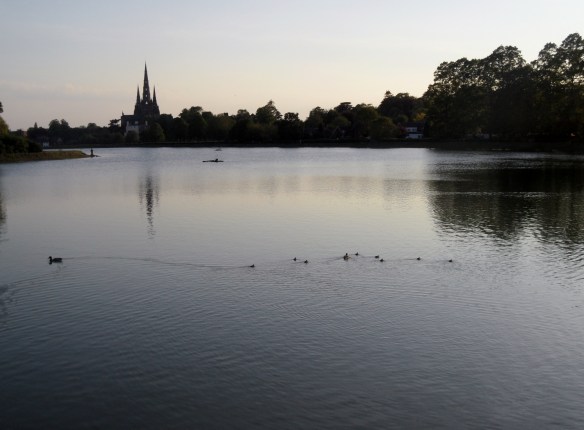 Whenever they were added, those windows feature a curious and seemingly eclectic collection of carvings. I’m not even sure what some of them are supposed to be, but in Lichfield’s very own pub quiz version of ‘Only Connect‘, I give you a man with a fish, a man drinking beer, some sort of castle, Lichfield Cathedral and an owl, a man composing music (possibly the same man as the one with the fish?) and a building with some foliage. Are they telling a tale of some sort, and if so, what is it?